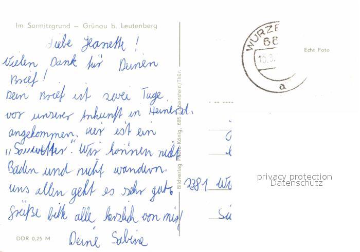 72633842 alte Postkarte Gruenau Leutenberg Sormitzgrund postalisch gelaufen Erhaltung siehe scans [FriedD77] KatCode: 11110016073106