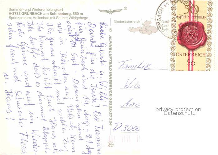 72780742 alte Postkarte Gruenbach Schneeberg mit Blick zum Schneeberg Fichtelgebirge Fliegeraufnahme postalisch gelaufen Erhaltung siehe scans [FriedD77] KatCode: 11390122031813
