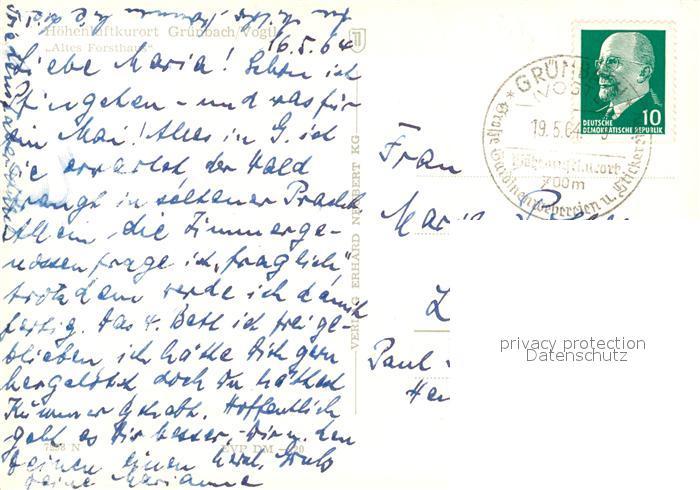 73102773 alte Postkarte Gruenbach Vogtland Altes Forsthaus postalisch gelaufen Erhaltung siehe scans [KathaD81] KatCode: 11110014178190