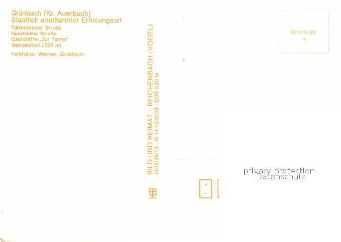 72651959 Gruenbach Vogtland Falkensteiner Str Neustaedter Str Gaststaette Zur Tanne Wendelstein postalisch nicht gelaufen Erhaltung siehe scans [WerneD78] KatCode: 11110014178190