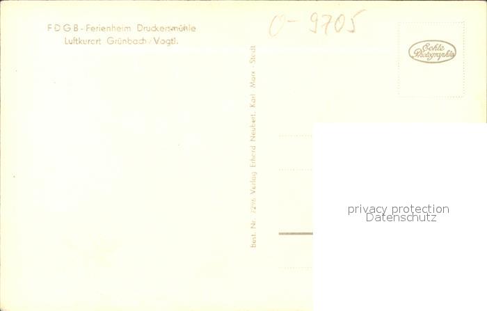 71948836 Gruenbach Vogtland FDGB Ferienheim Druckersmuehle postalisch nicht gelaufen Erhaltung siehe scans KatCode: 11110014178190