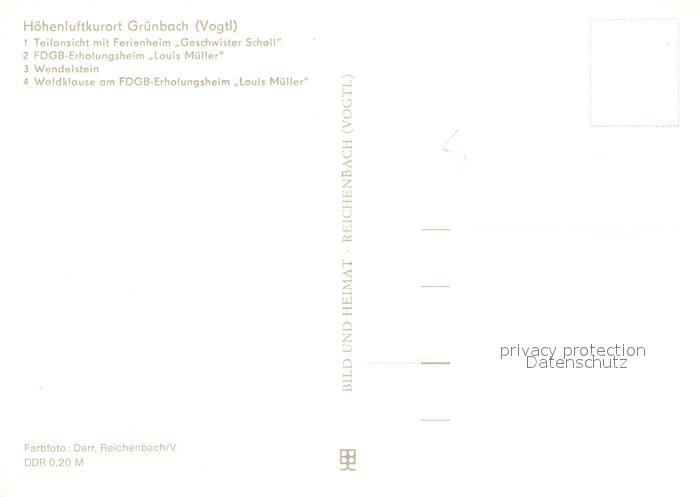 72997182 Gruenbach Vogtland Ferienheim Geschwister Scholl FDGB Erholungsheim Louis Mueller Wendelstein Waldklause postalisch nicht gelaufen Erhaltung siehe scans [WerneD78] KatCode: 11110014178190