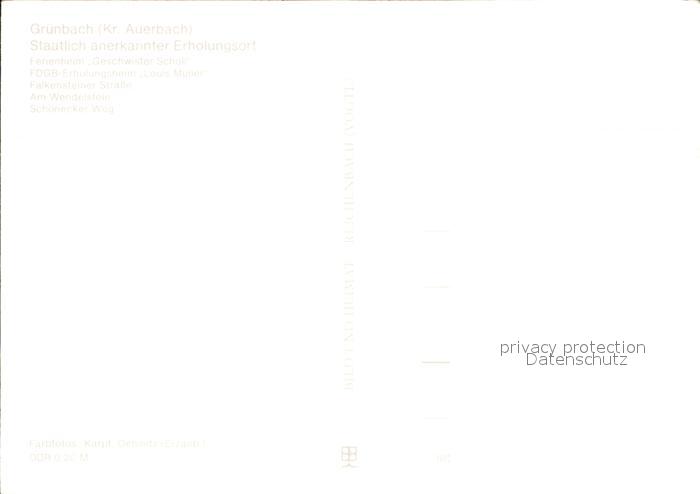 72423614 Gruenbach Vogtland Ferienheim Geschwister Scholl FDGB Erholungsheim Louis Mueller Falkensteiner Str Am Wendelstein Schoenecker Weg postalisch nicht gelaufen Erhaltung siehe scans KatCode: 11110014178190