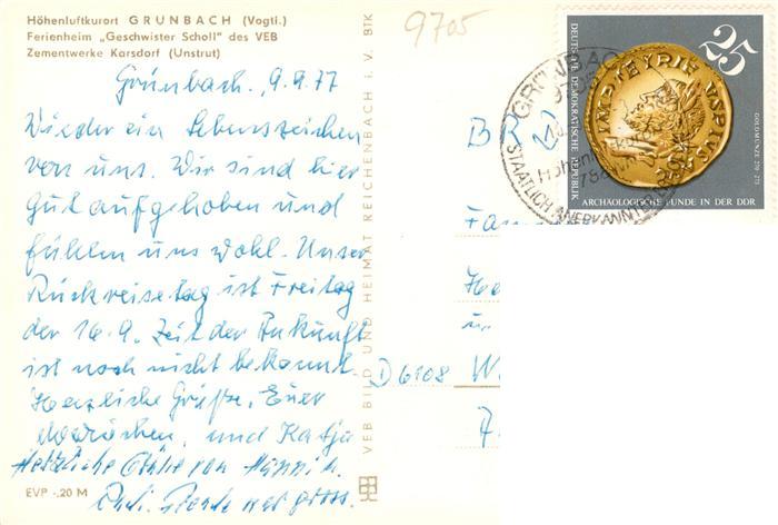 73876815 alte Postkarte Gruenbach Vogtland Ferienheim Geschwister Scholl postalisch gelaufen Erhaltung siehe scans [FriedD77] KatCode: 11110014178190