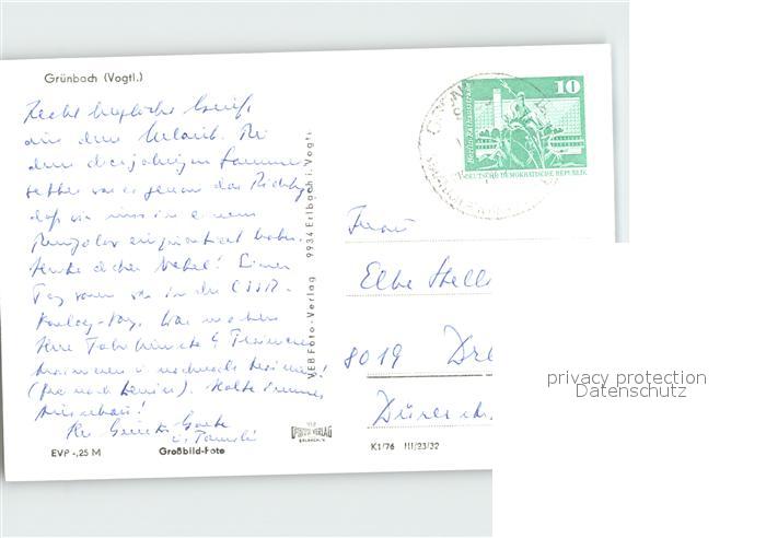 72078861 alte Postkarte Gruenbach Vogtland Panorama postalisch gelaufen Erhaltung siehe scans KatCode: 11110014178190