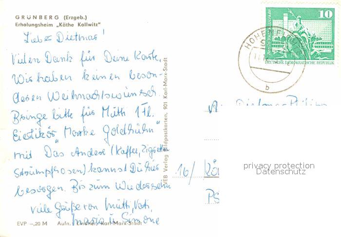 72680994 alte Postkarte Gruenberg Crimmitschau Erholungsheim Kaethe Kollwitz postalisch gelaufen Erhaltung siehe scans [LiesaD40] KatCode: 11110014193020