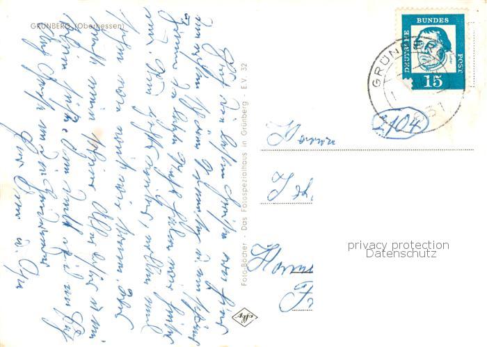 73867876 alte Postkarte Gruenberg Hessen Ortsansichten Panorama Schwimmbad postalisch gelaufen Erhaltung siehe scans [WerneD78] KatCode: 11110006531006