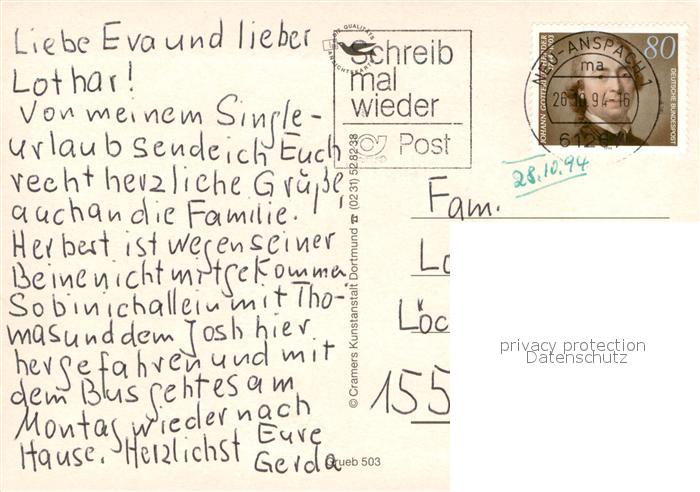 73673516 alte Postkarte Gruenberg Hessen Stadtkirche Marktplatz Altstadt Fachwerkhaeuser Alter Posthof Freibad postalisch gelaufen Erhaltung siehe scans [FriedD77] KatCode: 11110006531006