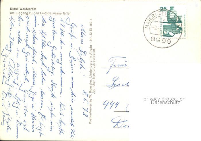 72280474 alte Postkarte Gruenenbach Allgaeu Kiosk Waldesrast Eistobelwasserfaellen postalisch gelaufen Erhaltung siehe scans KatCode: 11110009776113