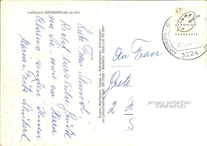 72109577 alte Postkarte Gruenenplan Fliegeraufnahme postalisch gelaufen Erhaltung siehe scans KatCode: 11110003255008