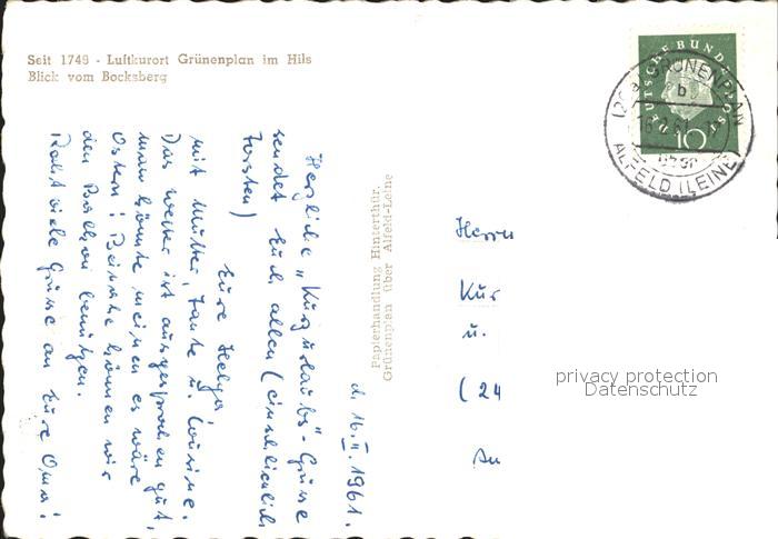72002023 alte Postkarte Gruenenplan Ortsansicht vom Bocksberg postalisch gelaufen Erhaltung siehe scans KatCode: 11110003255008