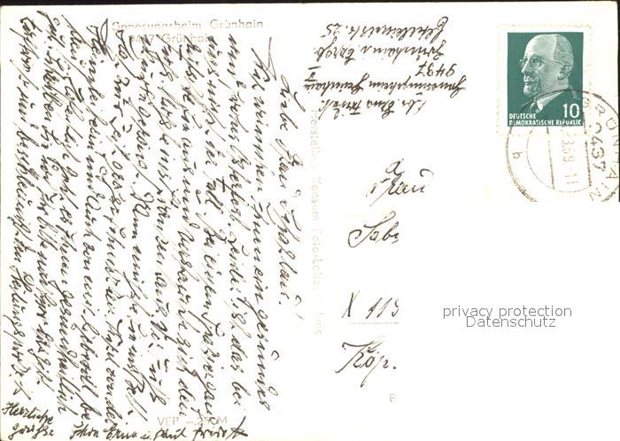 71939534 alte Postkarte Gruenhain-Beierfeld Genesungsheim postalisch gelaufen Erhaltung siehe scans KatCode: 11110014191050
