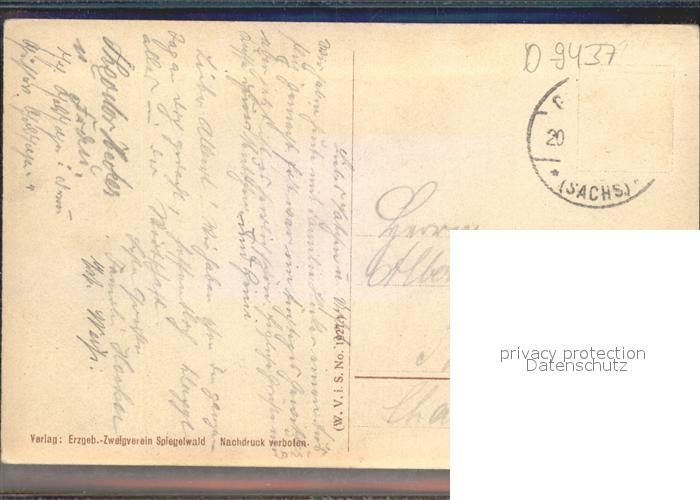 42214279 alte Postkarte Gruenhain-Beierfeld Koenig Albert Turm Spiegelwald Spiegelwaldlied postalisch gelaufen Erhaltung siehe scans KatCode: 11110014191050