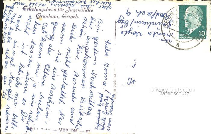 72384311 alte Postkarte Gruenhain Erzgebirge Erholungsheim fuer Jugendliche postalisch gelaufen Erhaltung siehe scans KatCode: 11110014191050