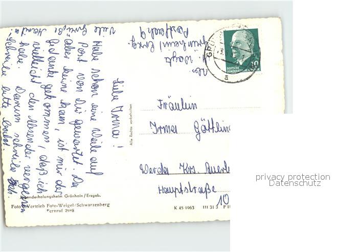 72359766 alte Postkarte Gruenhain Erzgebirge Jugenderholungsheim postalisch gelaufen Erhaltung siehe scans KatCode: 11110014191050