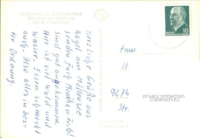 72074521 alte Postkarte Gruenheide Mark Alt Buchhorst Restaurant am Moellensee postalisch gelaufen Erhaltung siehe scans KatCode: 11110012067201