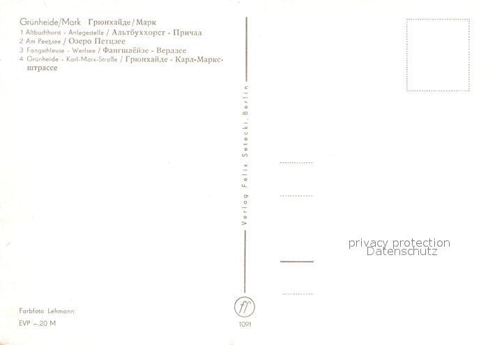 72935184 Gruenheide Mark Altbuchhaus Anlegestelle Peetzsee Werlsee Gr?nheide postalisch nicht gelaufen Erhaltung siehe scans [LiesaD40] KatCode: 11110012067201