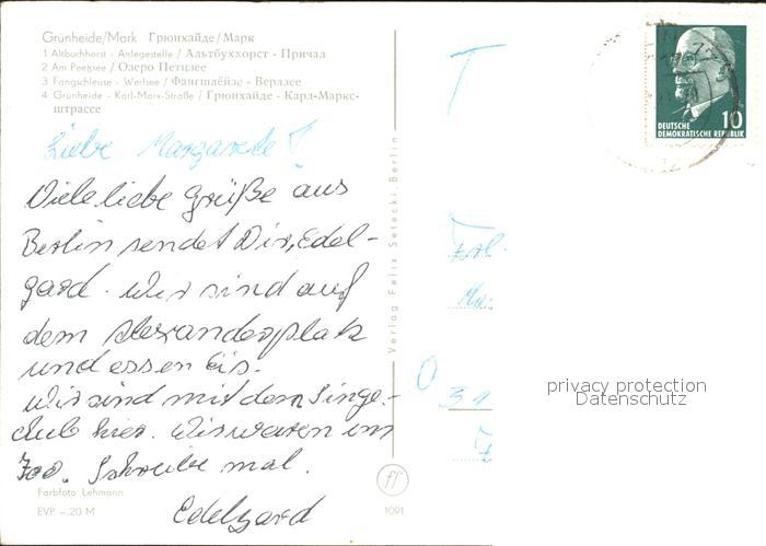 72202714 alte Postkarte Gruenheide Mark Altbuchorst Anlegestelle Peetzsee Fangschleuse postalisch gelaufen Erhaltung siehe scans KatCode: 11110012067201