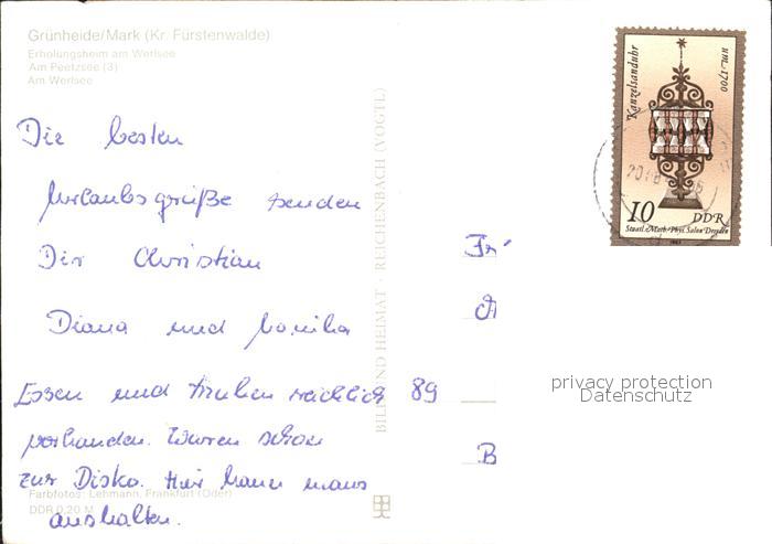 72337068 alte Postkarte Gruenheide Mark Erholungsheim am Werlsee Peetzsee Badestrand Motorboot postalisch gelaufen Erhaltung siehe scans KatCode: 11110012067201