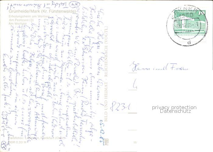 72407033 alte Postkarte Gruenheide Mark Erholungsheim am Werlsee Peetzsee Strand Motorboot postalisch gelaufen Erhaltung siehe scans KatCode: 11110012067201