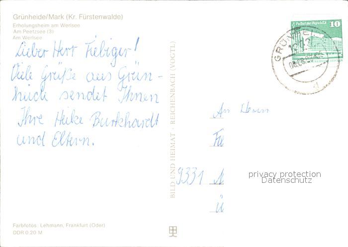 72324738 alte Postkarte Gruenheide Mark Erholungsheim am Werlsee Peetzsee postalisch gelaufen Erhaltung siehe scans KatCode: 11110012067201