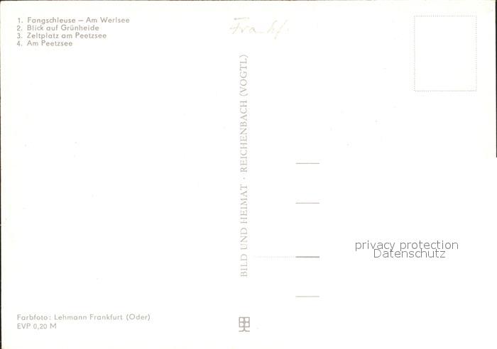 72382616 Gruenheide Mark Fangschleuse Werlsee Zeltplatz Peetzsee postalisch nicht gelaufen Erhaltung siehe scans KatCode: 11110012067201