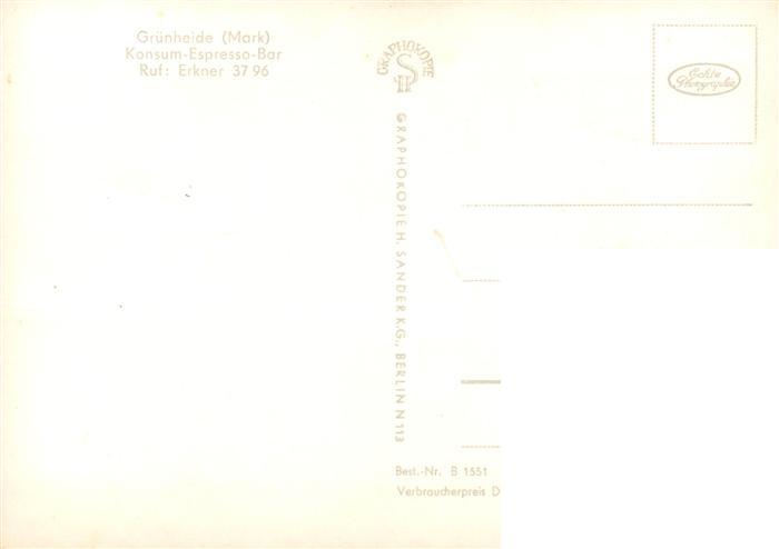 73887132 Gruenheide Mark Konsum Espresso Bar postalisch nicht gelaufen Erhaltung siehe scans [WerneD78] KatCode: 11110012067201