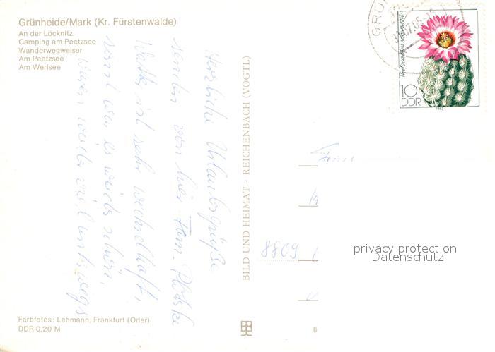 72971392 alte Postkarte Gruenheide Mark Loecknitz Camping Peetzsee Wandwegweiser Werlsee Bootsanleger Ausflugsdampfer postalisch gelaufen Erhaltung siehe scans [FriedD77] KatCode: 11110012067201
