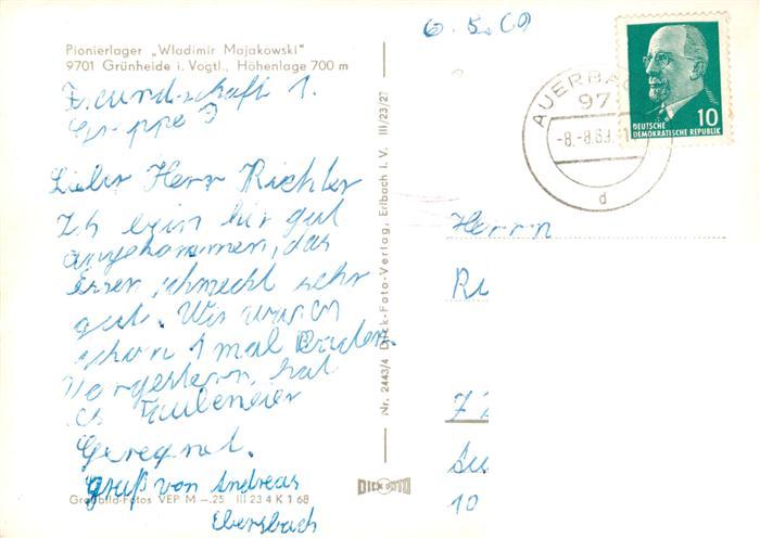 73886968 alte Postkarte Gruenheide Vogtland Pionierlager Wladiir Majakowski postalisch gelaufen Erhaltung siehe scans [WerneD78] KatCode: 11110014178030