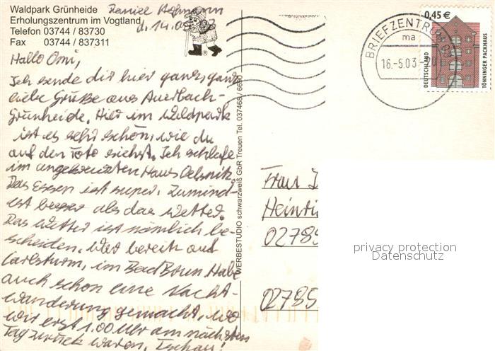 73643963 alte Postkarte Gruenheide Vogtland Waldpark Gruenheide Fliegeraufnahme postalisch gelaufen Erhaltung siehe scans [WerneD78] KatCode: 11110014178030