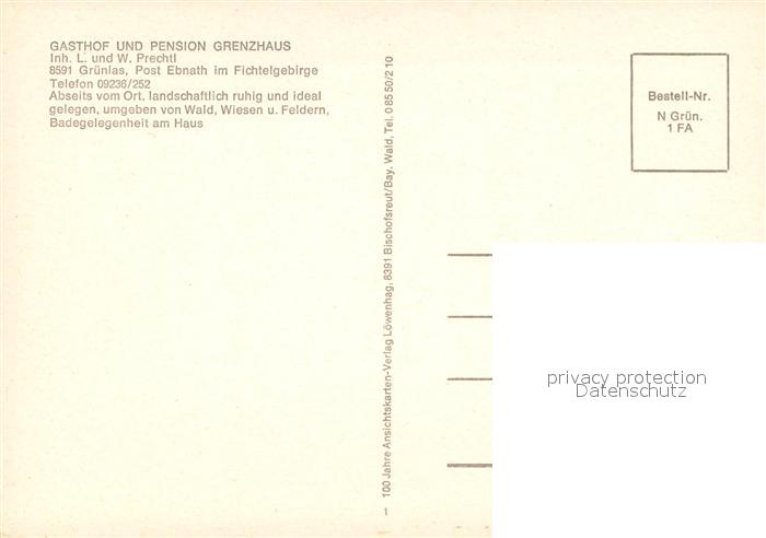 73739351 Gruenlas Oberpfalz Gasthof Pension Grenzhaus Gartenterrasse postalisch nicht gelaufen Erhaltung siehe scans [WerneD78] KatCode: 11110009377115