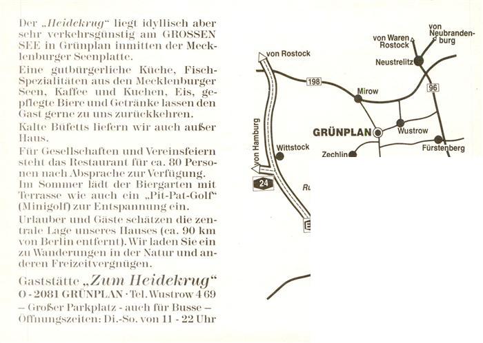 73945970 Gruenplan Wustrow Gaststaette zum Heidekrug am Grossen See postalisch nicht gelaufen Werbekarte (keine Postkarte) Erhaltung siehe scans [FriedD77] KatCode: 11110013057094