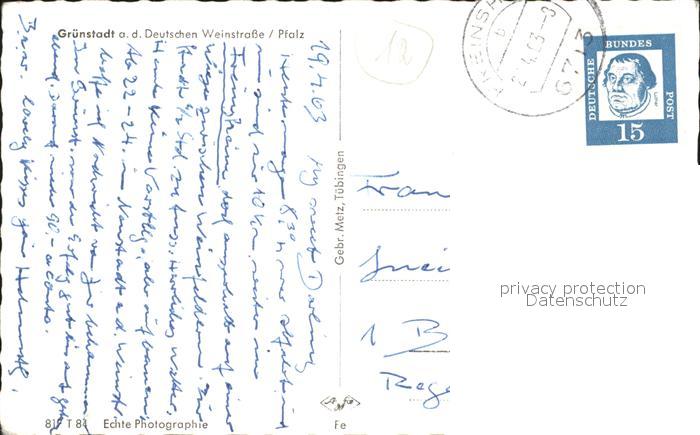 31728149 alte Postkarte Gruenstadt Deutschen Weinstrasse postalisch gelaufen Erhaltung siehe scans KatCode: 11110007332024