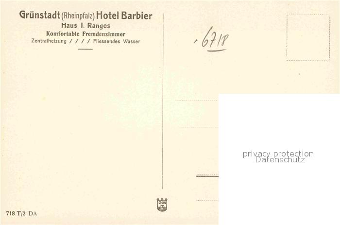 42897586 Gruenstadt Hotel Barbier postalisch nicht gelaufen Erhaltung siehe scans [NatalD47] Nata Katcode 11110008136084