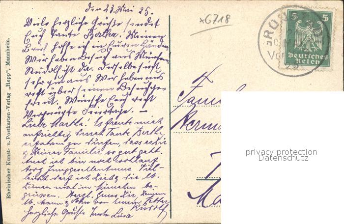 41791508 alte Postkarte Gruenstadt Kirchheimer Strasse postalisch gelaufen Erhaltung siehe scans KatCode: 11110007332024