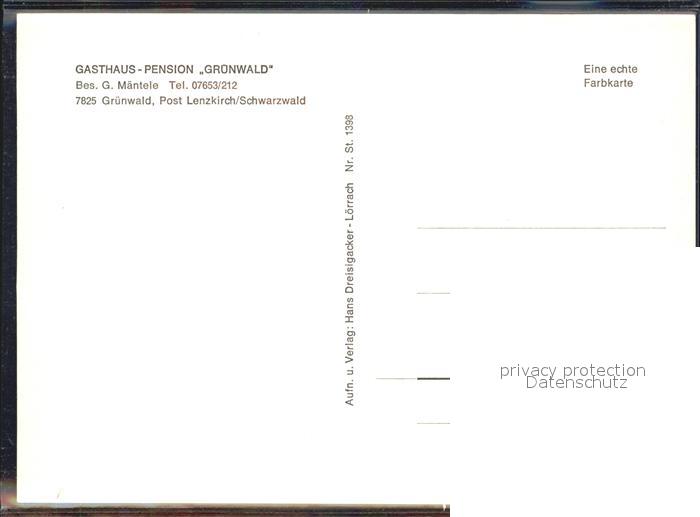 72422751 Gruenwald Lenzkirch Gasthaus Pension postalisch nicht gelaufen Erhaltung siehe scans KatCode: 11110008315068