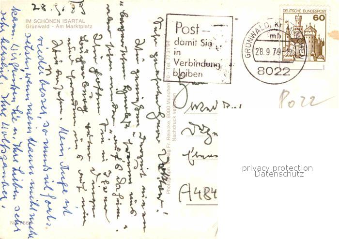 72838428 alte Postkarte Gruenwald Muenchen Am Marktplatz postalisch gelaufen Erhaltung siehe scans [WerneD78] KatCode: 11110009184122