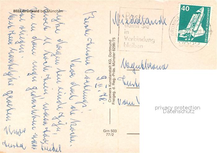 72932316 alte Postkarte Gruenwald Muenchen Fliegeraufnahme postalisch gelaufen Erhaltung siehe scans [WerneD78] KatCode: 11110009184122