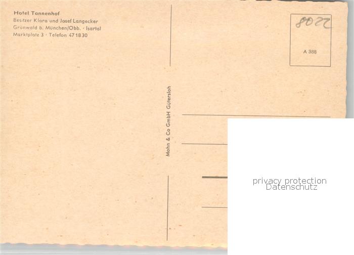 43491386 Gruenwald Muenchen Hotel Tannenhof postalisch nicht gelaufen Erhaltung siehe scans [KathaD81] KatCode: 11110009184122