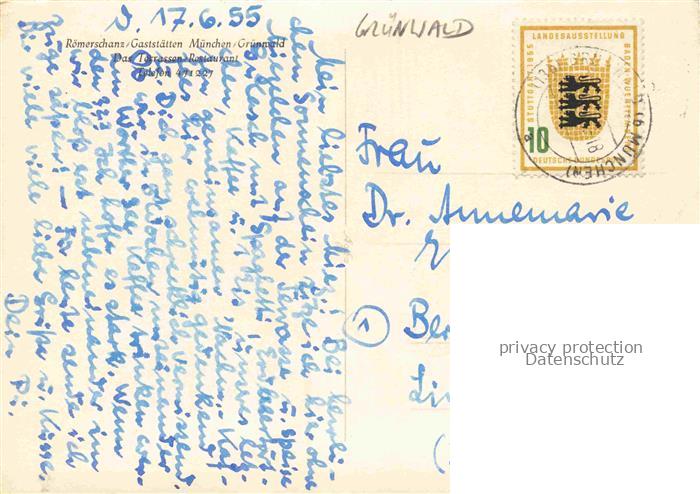34144481 alte Postkarte Gruenwald Muenchen Roemerschanze Gaststaetten Fliegeraufnahme postalisch gelaufen Erhaltung siehe scans [WerneD78] KatCode: 11110009184122