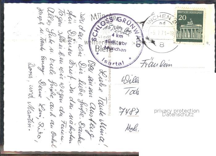 72129429 alte Postkarte Gruenwald Muenchen Schloss Gruenwald postalisch gelaufen Erhaltung siehe scans KatCode: 11110009184122