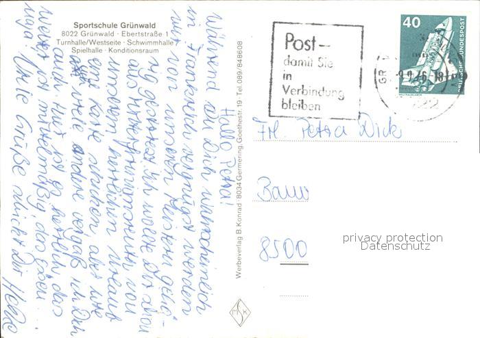 72284907 alte Postkarte Gruenwald Muenchen Sportschule Gruenwald postalisch gelaufen Erhaltung siehe scans KatCode: 11110009184122