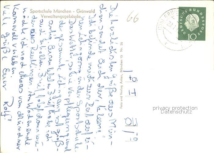 72017653 alte Postkarte Gruenwald Muenchen Sportschule Verwaltungsgebaeude postalisch gelaufen Erhaltung siehe scans KatCode: 11110009184122