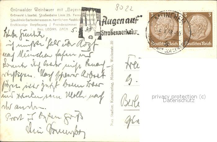 71502505 alte Postkarte Gruenwald Muenchen Weinbauer Bayern postalisch gelaufen Erhaltung siehe scans KatCode: 11110009184122