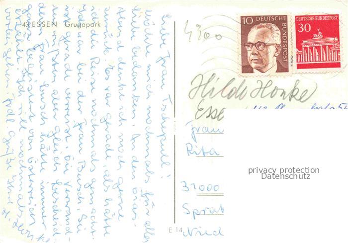74055072 alte Postkarte GRUGA Ausstellungspark EssEN Ruhr postalisch gelaufen Erhaltung siehe scans [SanaeD93] KatCode: 11110005113000