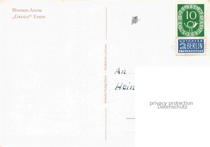 74052258 alte Postkarte Grugapark GRUGA Ausstellungspark EssEN Ruhr Blumen Area postalisch gelaufen Erhaltung siehe scans [SanaeD93] KatCode: 11110005113000