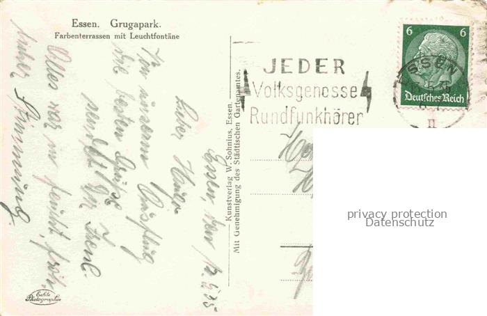 74041844 alte Postkarte Grugapark GRUGA Ausstellungspark EssEN Ruhr Farbenterrasse Leuchtfontoene postalisch gelaufen Erhaltung siehe scans [IrynaD87] KatCode: 11110005113000