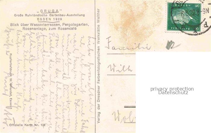 74052231 alte Postkarte Grugapark GRUGA Ausstellungspark EssEN Ruhr Wasserterrassen Rosenanlage postalisch gelaufen Erhaltung siehe scans [SanaeD93] KatCode: 11110005113000
