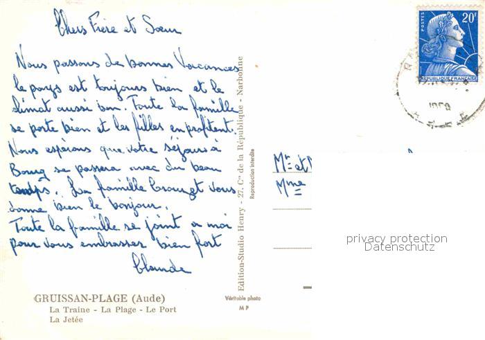 12768948 carte postale Gruissan Plage Traine Plage Port Jetee postalisch gelaufen Erhaltung siehe scans [FriedD77] KatCode: 11170011311170