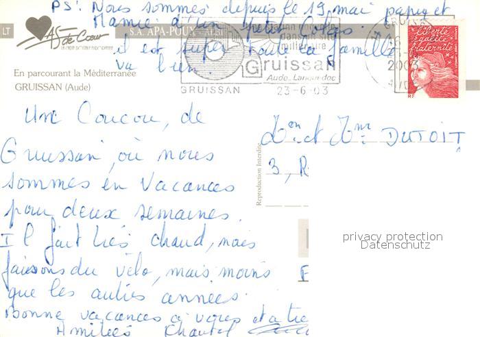13536234 carte postale Gruissan Port bateaux a voile Chateau postalisch gelaufen Erhaltung siehe scans [FriedD77] KatCode: 11170011311170